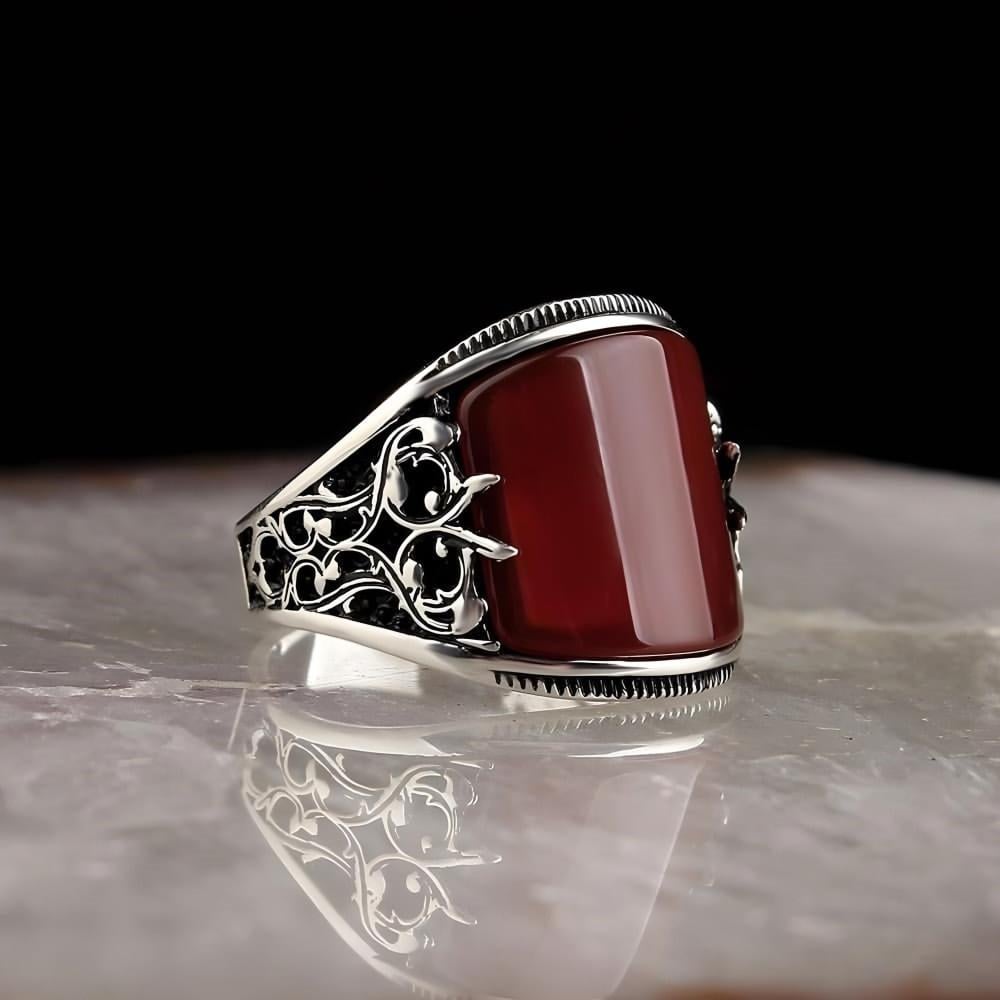 خاتم مصاغ من الفضة الإسترلينية عيار 925 بحجر عقيق أحمر