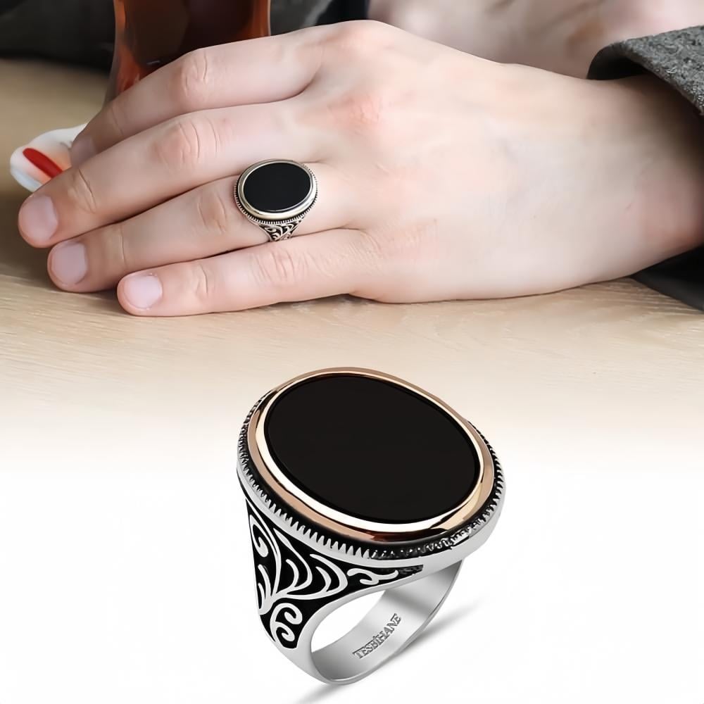 خاتم راقي من الفضة الخالصة عيار 925 بحجر عقيق أسود أنيق