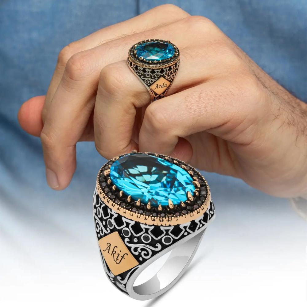 قطعة تفيض بالأناقة والتميّز تمثلت في خاتم يجمع بين حجر الزركون بلونه الأزرق المتألق مع رقي الفضة الخالصة بصياغتها الفنية والإبداعية.