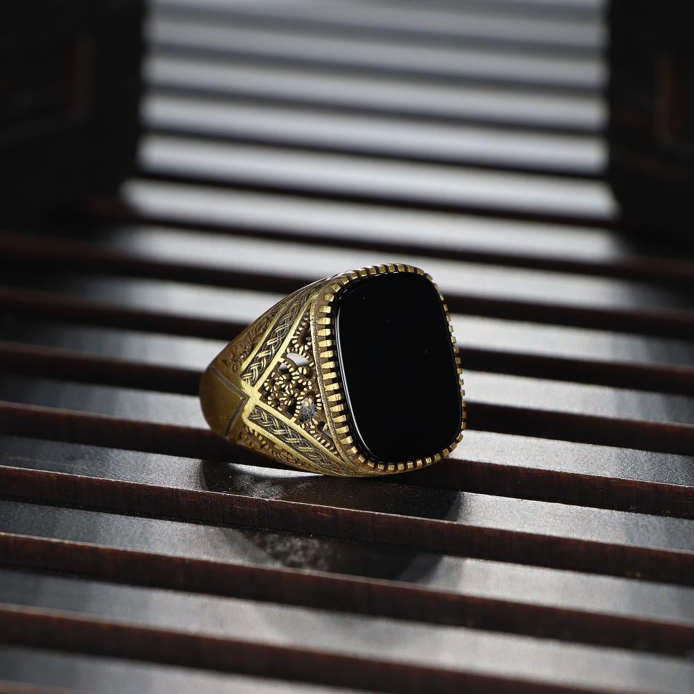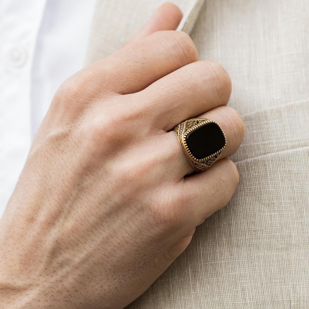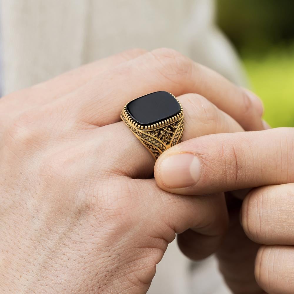 خاتم راقي من الفضة المطفية عيار 925 بحجر أونكس أسود أنيق