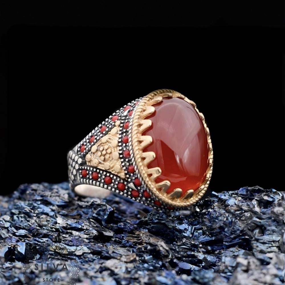 خاتم راقي مرصع بحجر ياقوت مميز - فضة إسترلينية خالصة