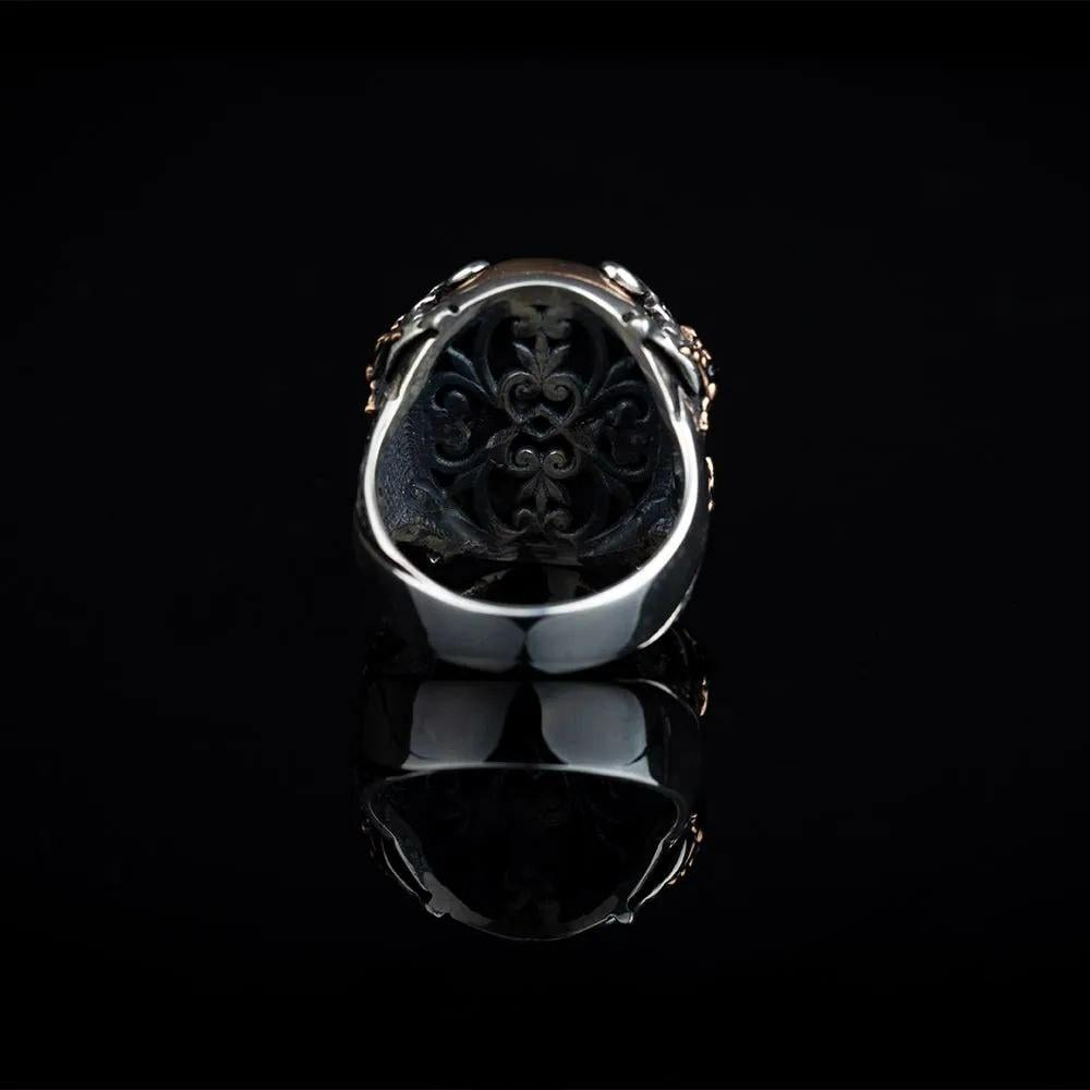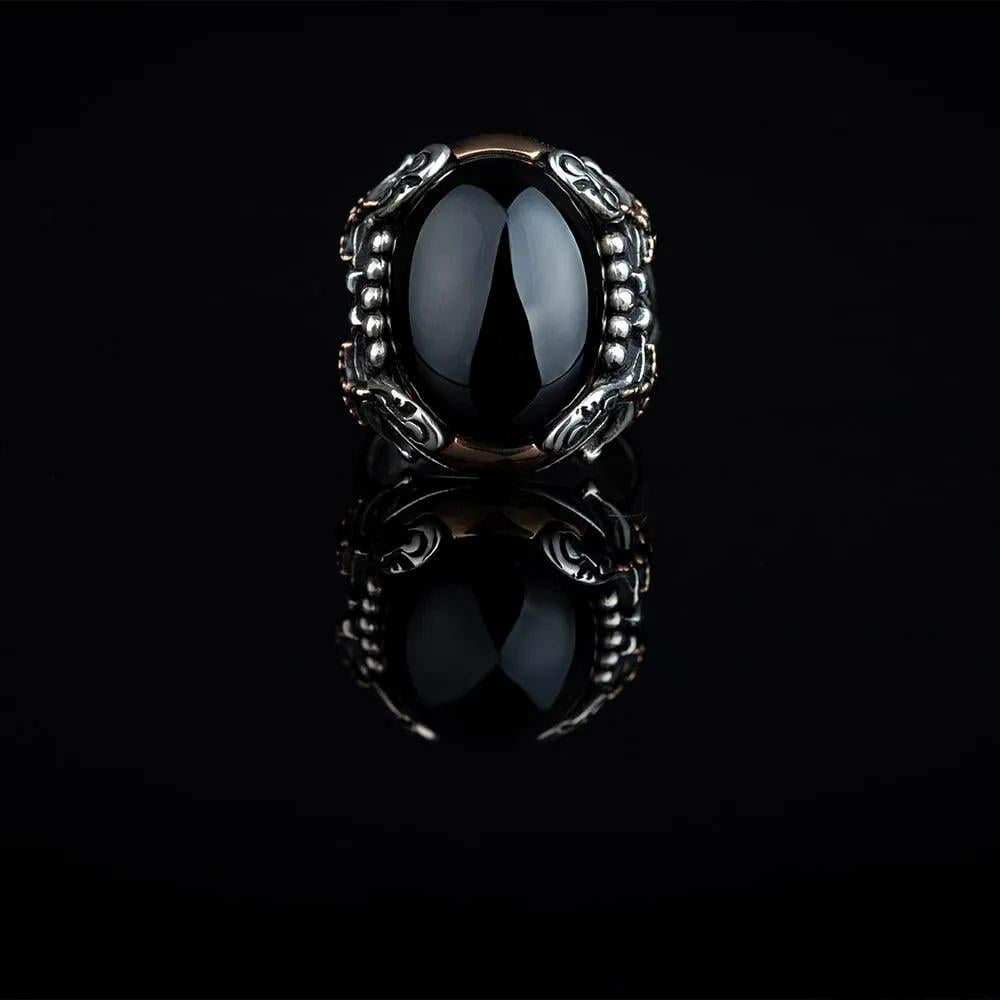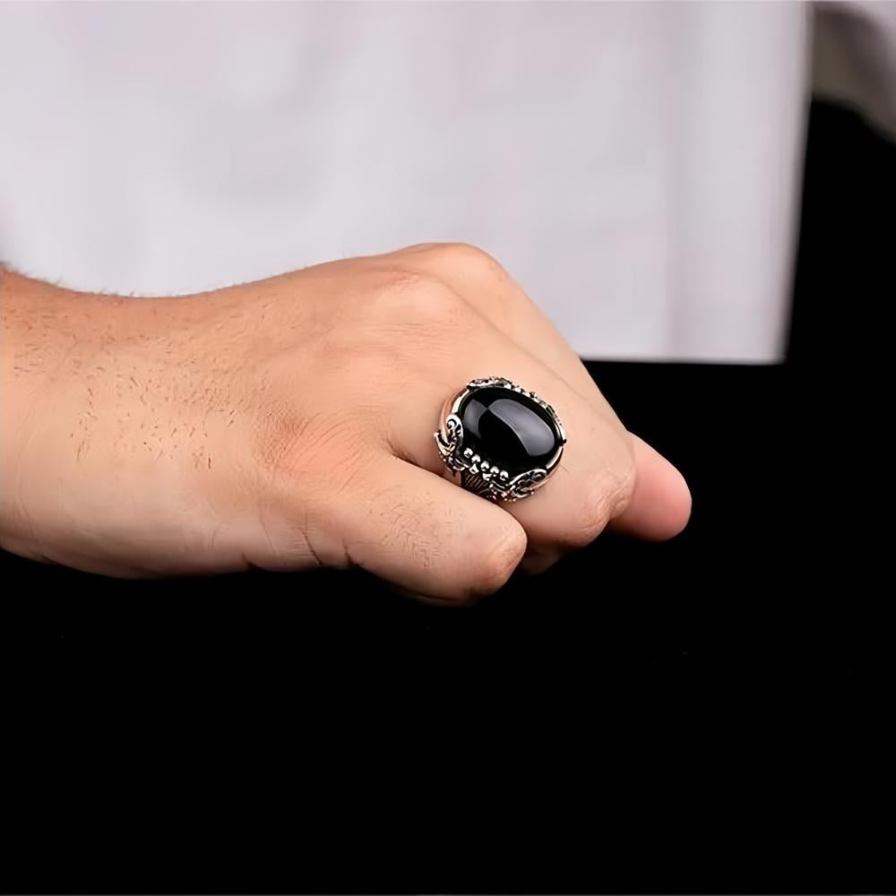 خاتم بصياغة راقية و مميزة من الفضة الخالصة و مرصع بحجر عقيق أسود