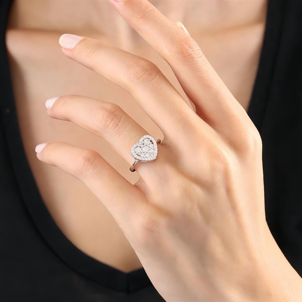 إهدي من تحب خاتم بتصميم قلب متلألئ مرصوف بفصوص دقيقة متناسقة تعكس الضوء من كل زاوية، مما يمنح الخاتم بريقاً يخطف الأنظار.