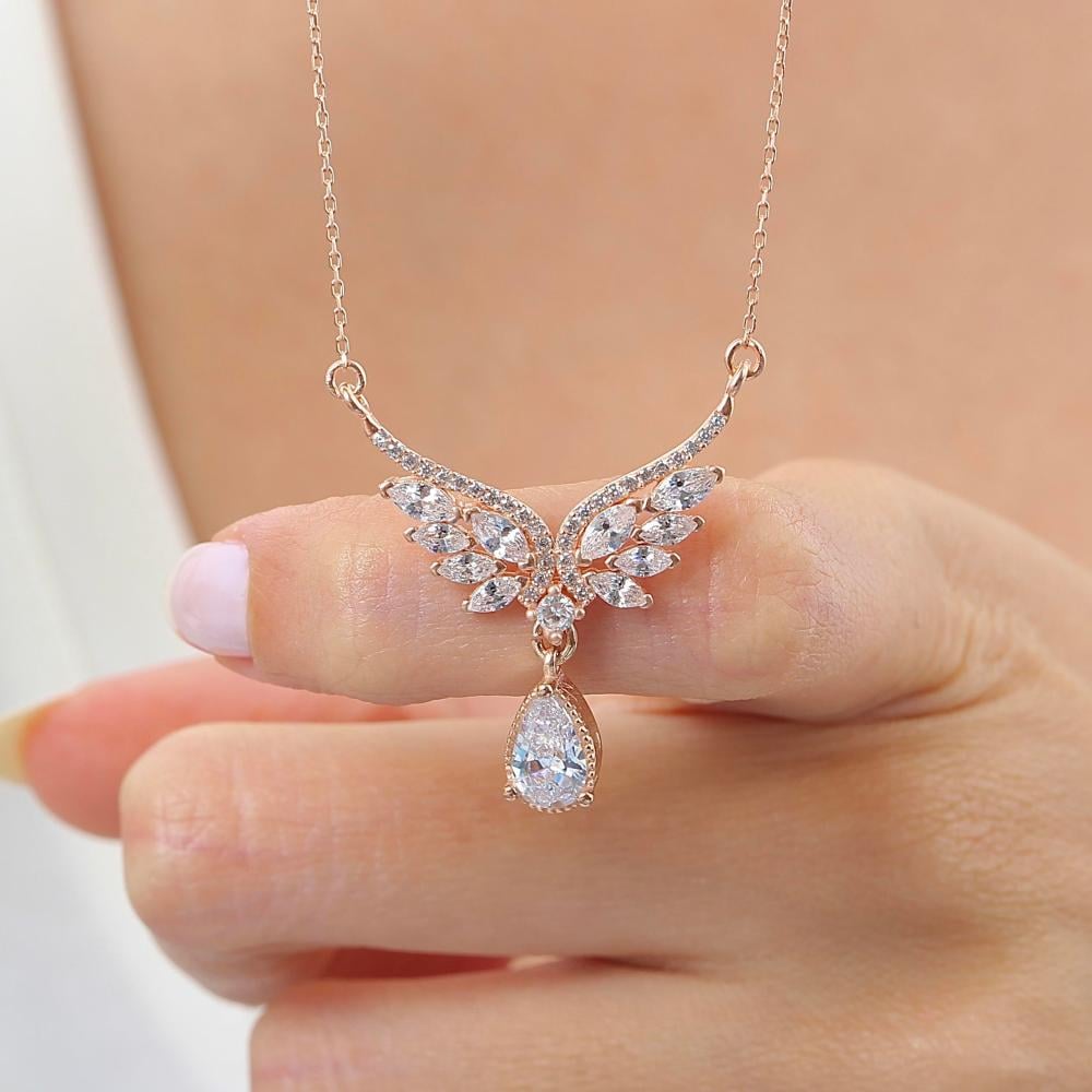 استمتعي بجمال التصميم العصري مع هذه القلادة المصنوعة من الفضة المطلية بالذهب صُممت على شكل أجنحة أنيقة مرصعة بأحجار وفصوص السوارفيسكي التي تضيف لمعاناً وسحراً لا يُقاوم.