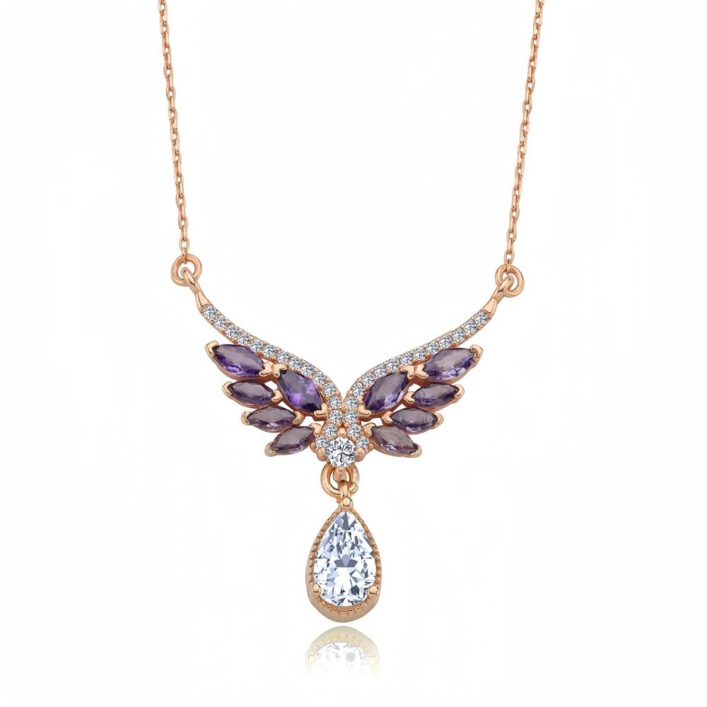 هذة القلادة الراقية صنعت بتناغمٌ ساحر يجمع بين ألوان طلاء الذهب للفضة الخالصة وأحجار الأميتيست المعالجة مع بريق السوارفيسكي الذي يضفي على إطلالتك أو إطلالة من تحب لمسة من الجمال والتألق.