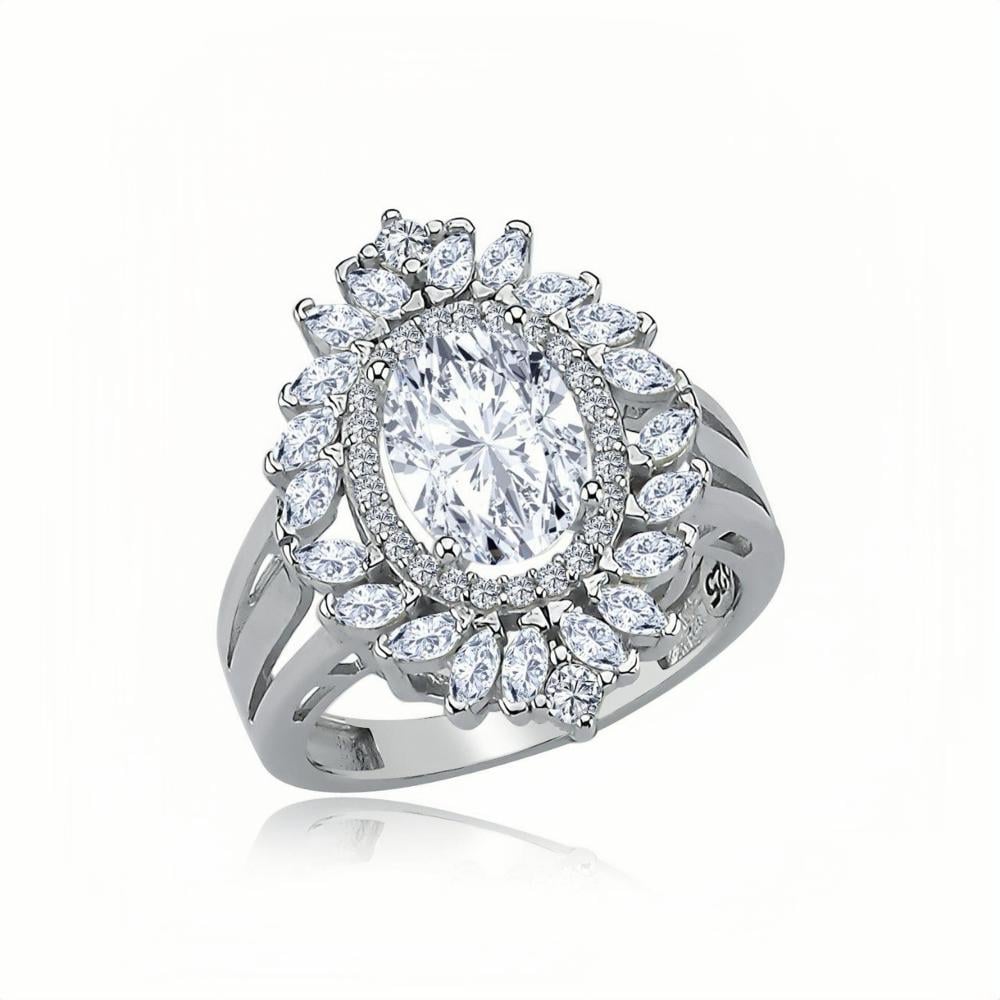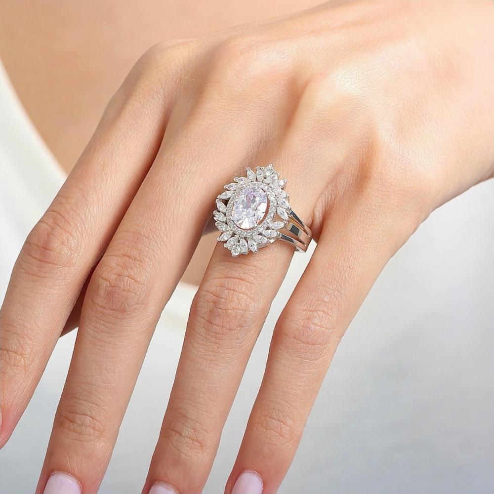 خاتم فضة فخم و متألق بأحجار سوارفيسكي بيضاء متلألئة
