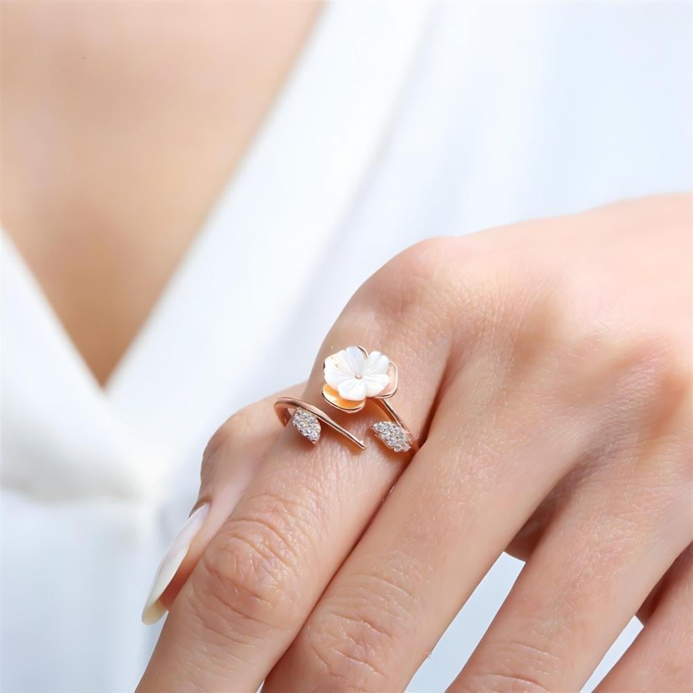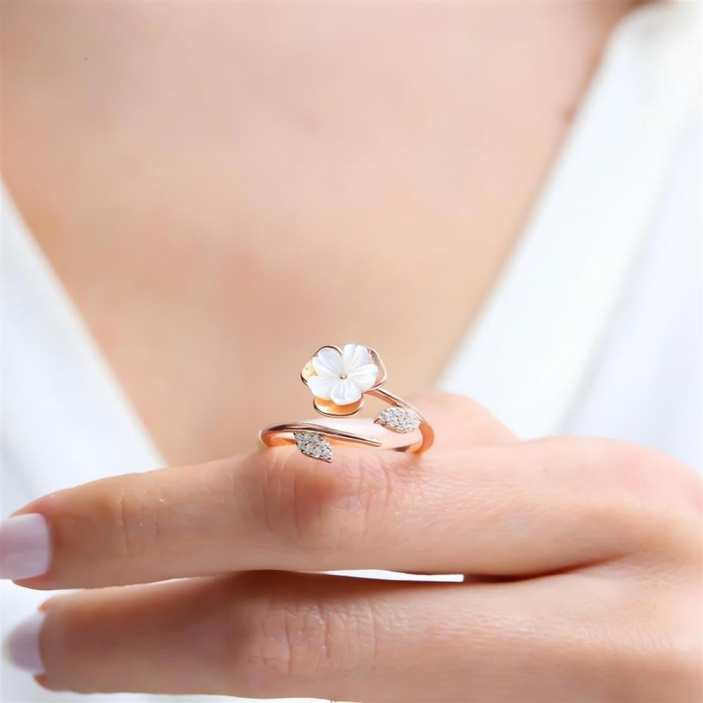 خاتم فضة مطلية روز بتصميم زهرة الماغنوليا ومطعم بفصوص مميزة