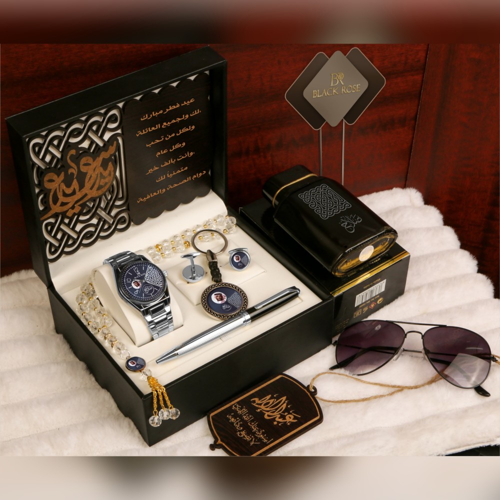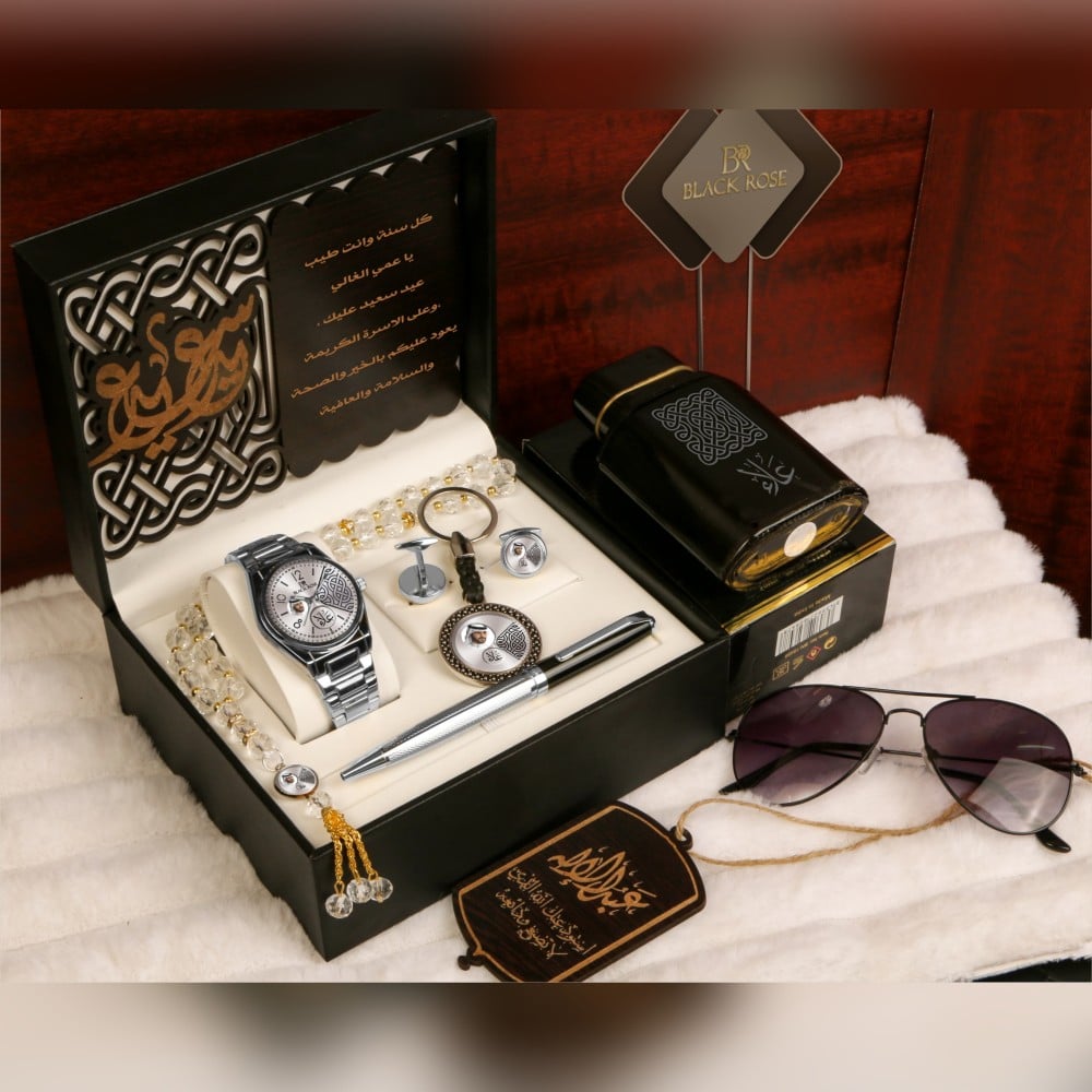 أطقم هدايا عيدية فخمة بساعة رجالية مع إكسسوارات أنيقة بتصميم خاص