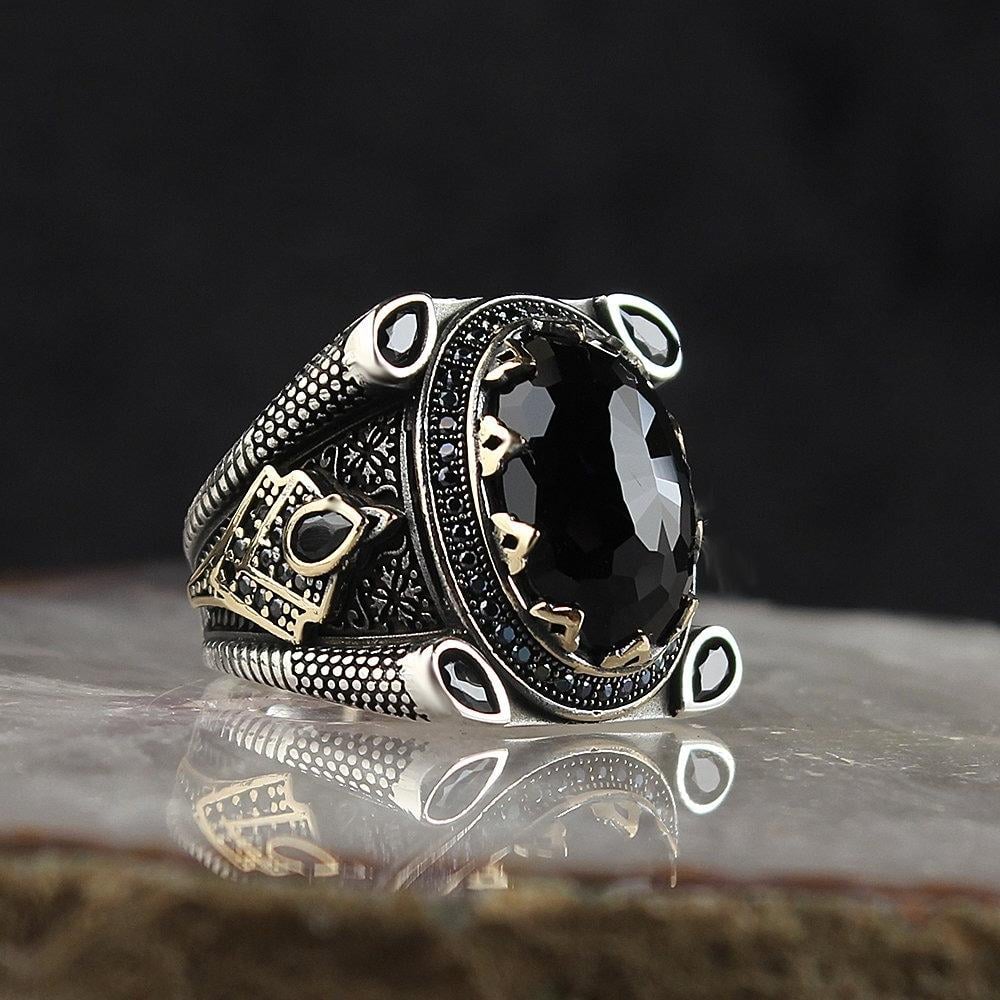 إليك هذا الخاتم بصياغتة اليدوية المميزة و المصنوع من الفضة الإسترلينية الخالصة عيار 925 و المرصع بحجر الزركون الأسود.