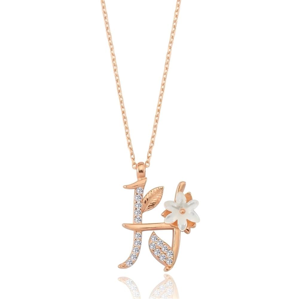 Elegant silver chain with the letter H, inlaid with sparkling Swarovski crystals and an elegant flower