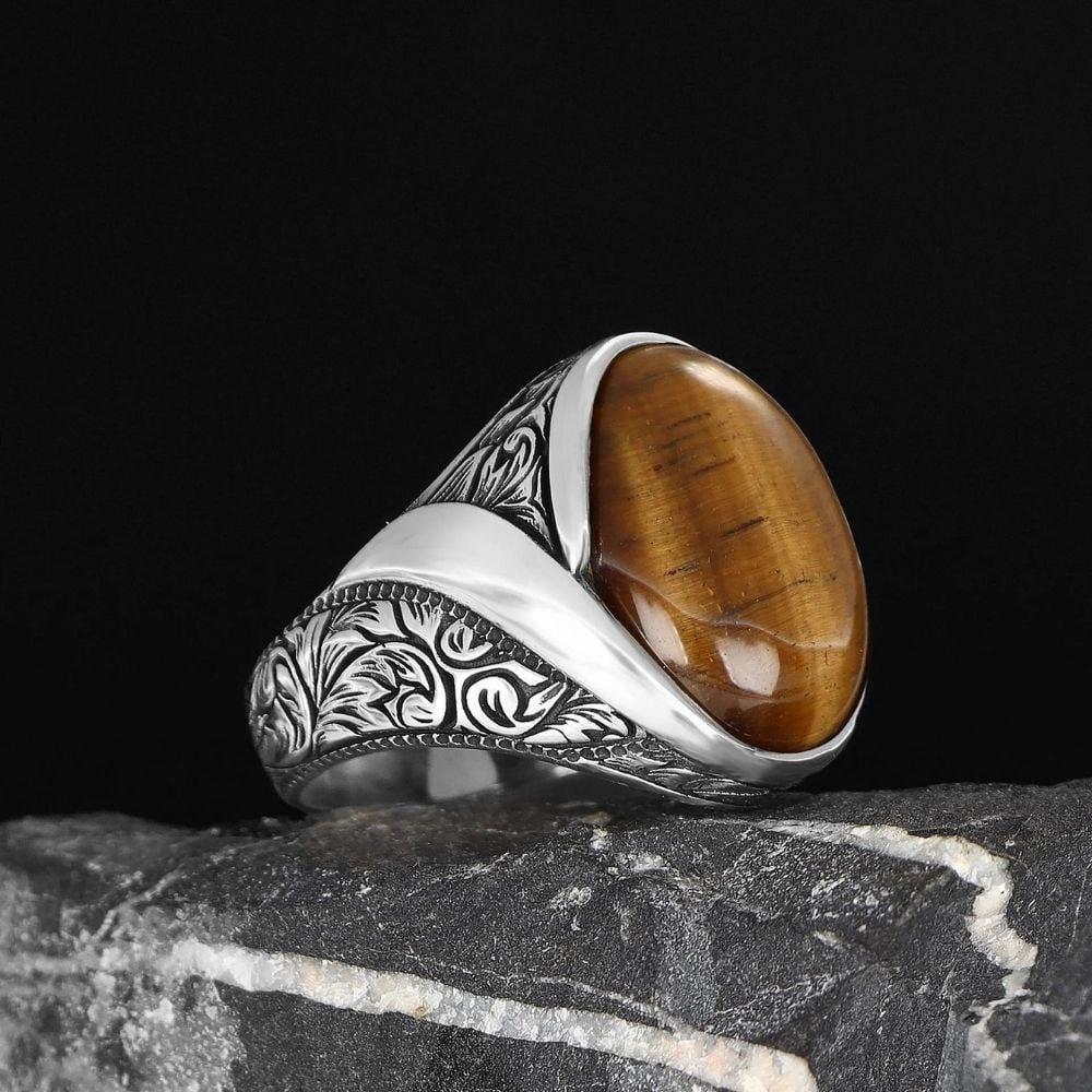 This elegant ring is a testament to the supreme skill and craftsmanship of its craftsmanship. It is crafted from the highest quality 925 sterling silver and is studded with a natural tiger's eye agate stone, giving it a touch of exceptional luxury.