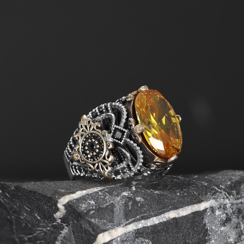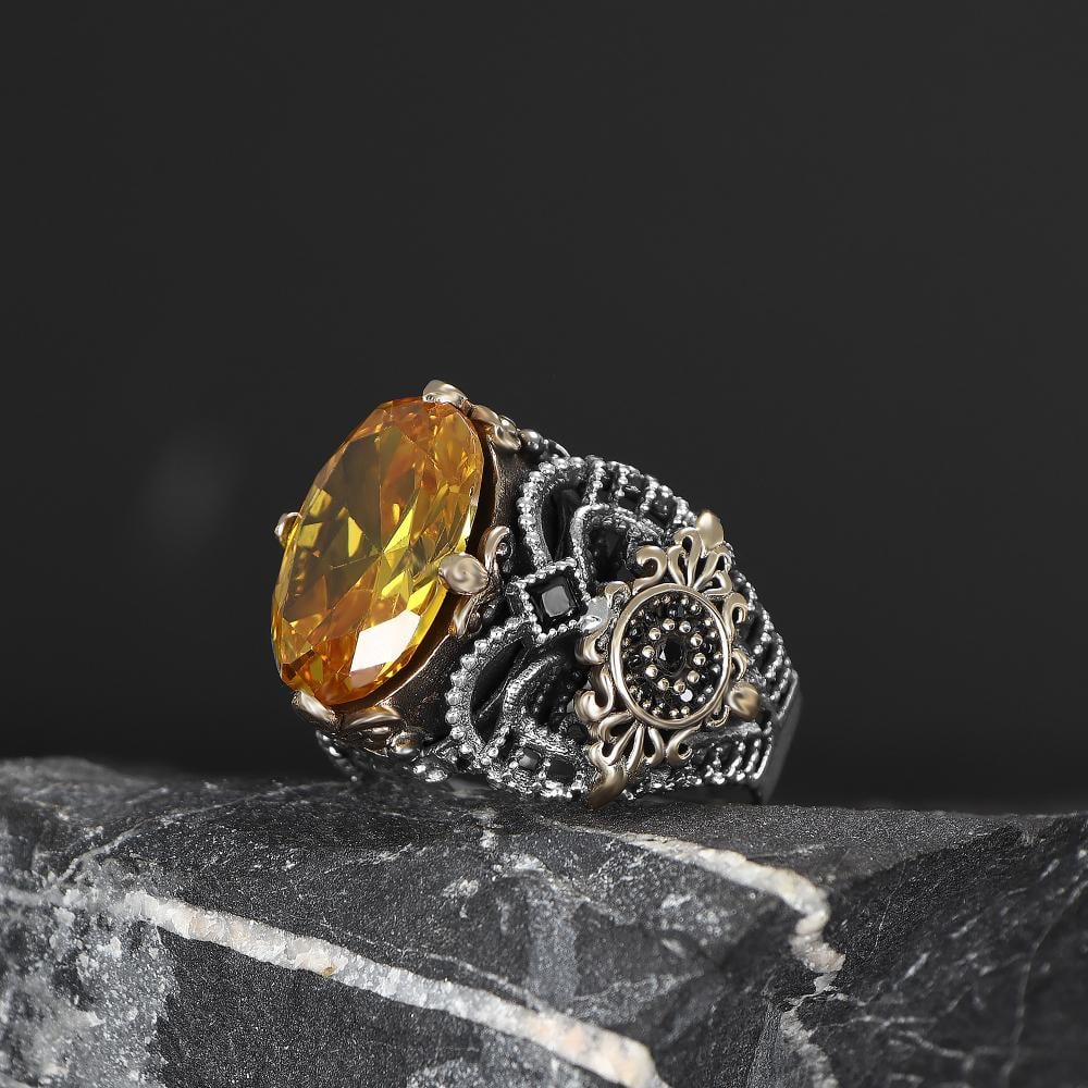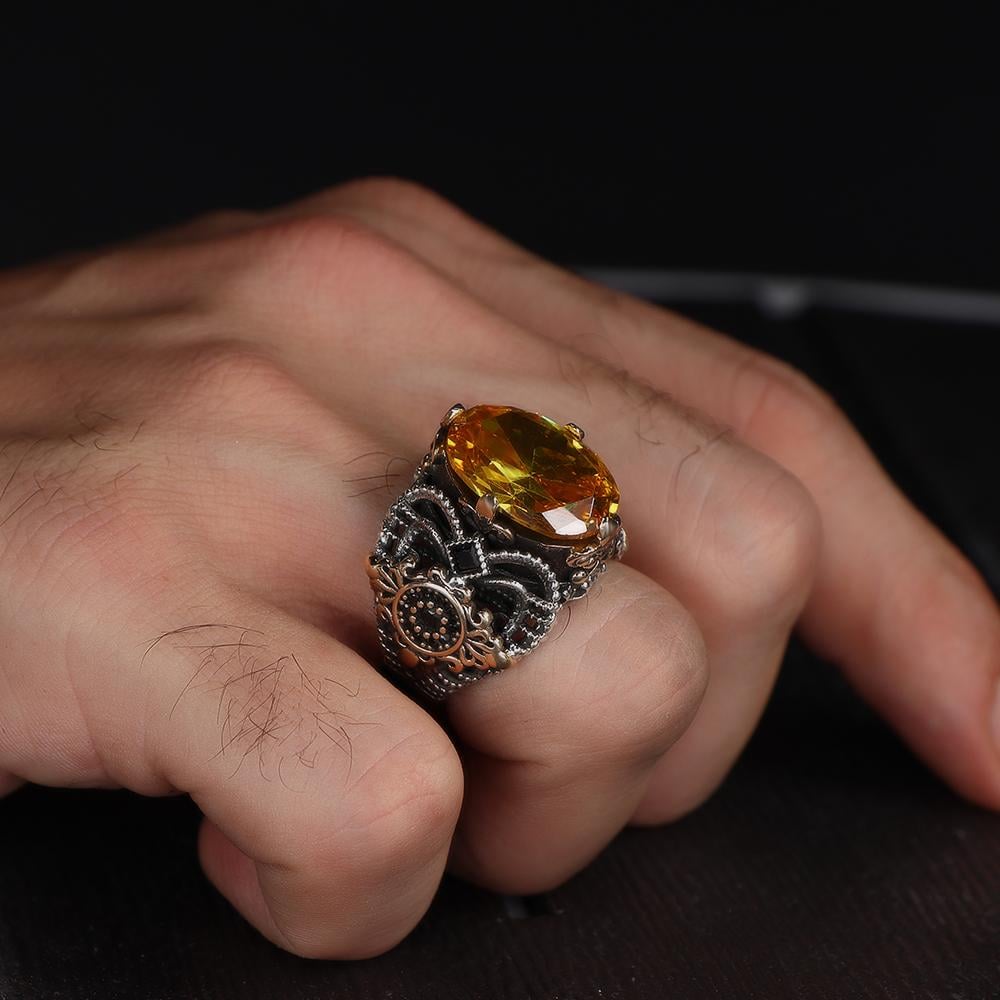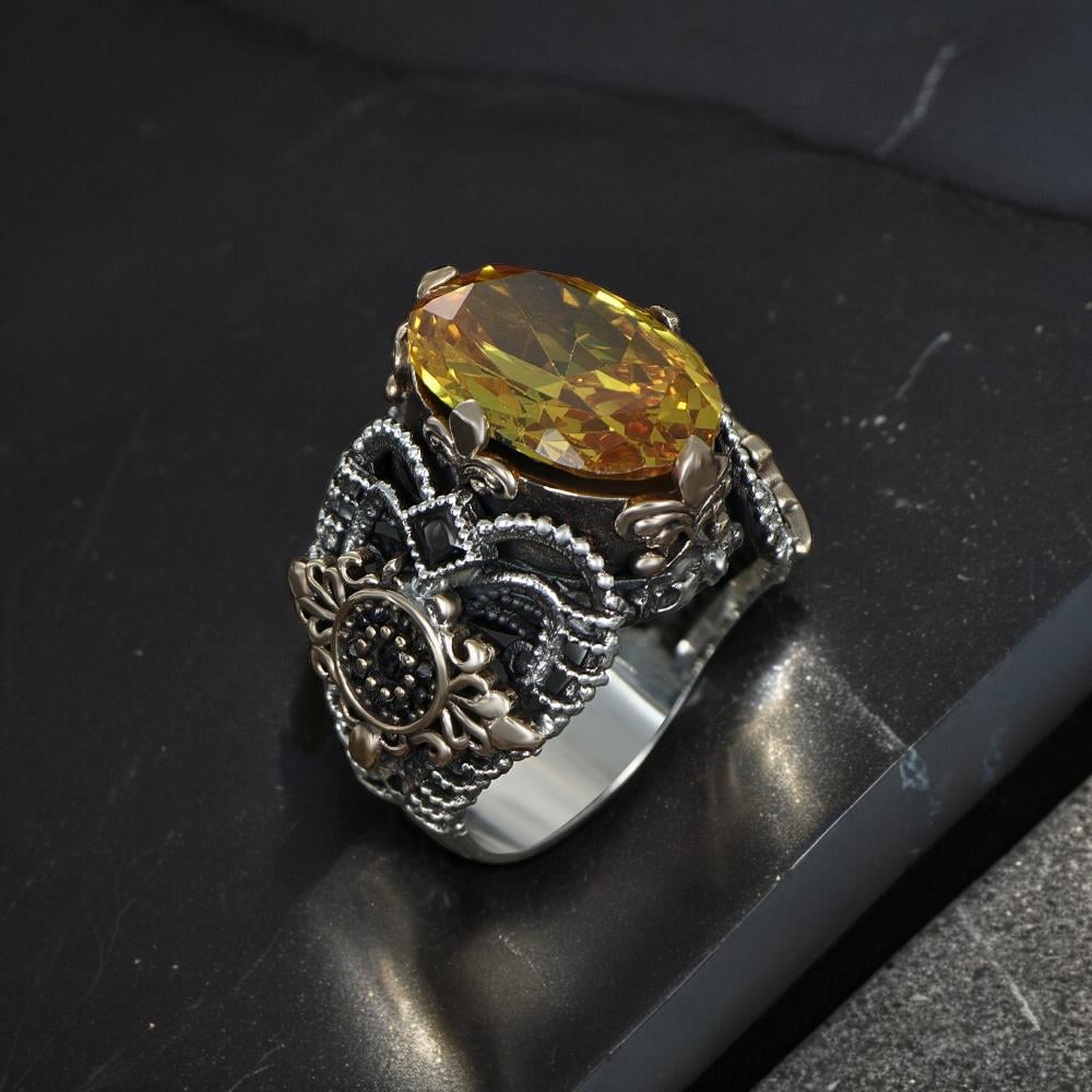 Fine Handcrafted Sterling Silver Ring with Distinctive Citrine Stone I-330